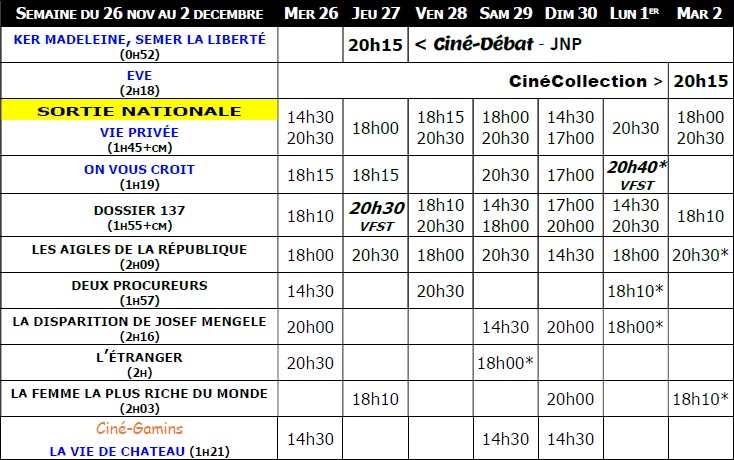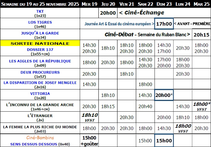 Le cinéma sera fermé les lundi 17 et mardi 18 novembre