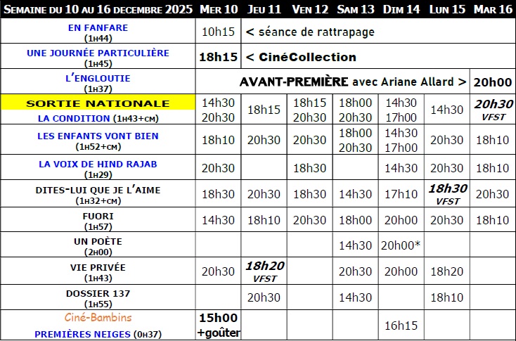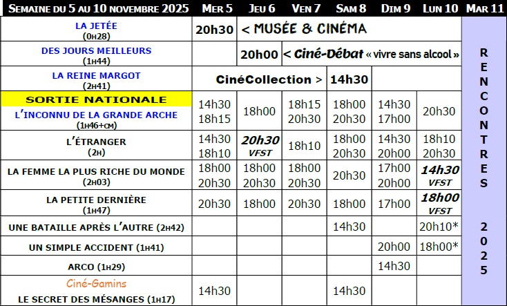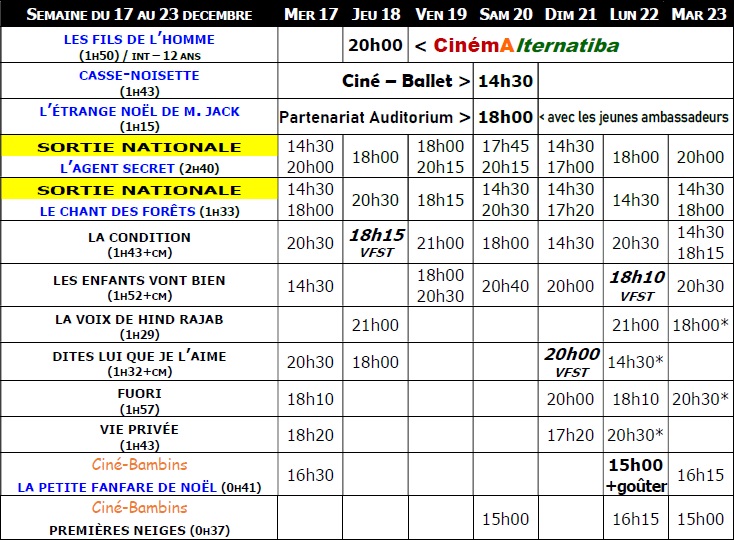 – Pour les ciné-goûter : pas de réservation préalable (sauf groupe). Avant la séance, merci de nous préciser si vous restez au goûter.