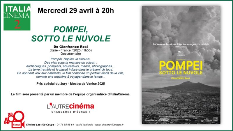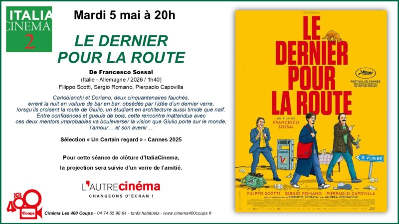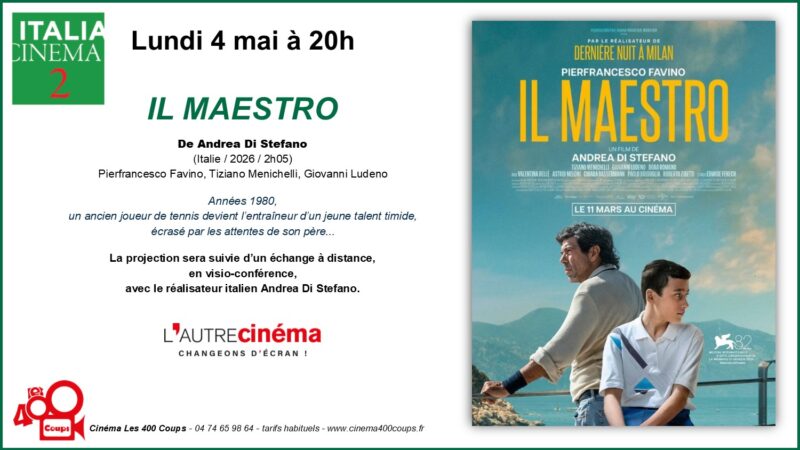 Du 8 avril au 5 mai 2026 Le cinéma Les 400 Coups et l’association L’Autre Cinéma proposent un focus sur le cinéma italien. Au Programme : Avant-Première, Musique & cinéma, Westerns, Documentaire, cinéma... Pour en savoir plus